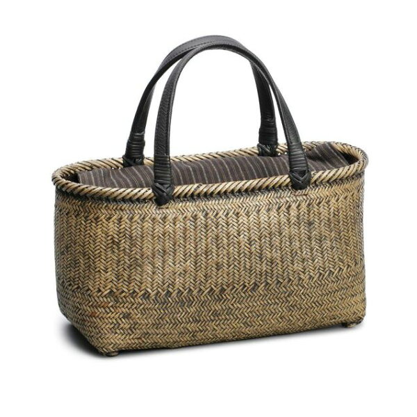 ■サイズ W34.5×D13×H18(+14)cm ■素 材 本体:皮籐 ■持ち手:牛革 ■内布:綿 ■作 家 毛利 健一 ※内ポケット+ファスナー付ポケット ※箱入りです 伝統×モダニズム。